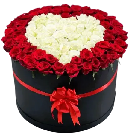 • Премиум (на фото) - 101 роза, шляпная коробка, оазис