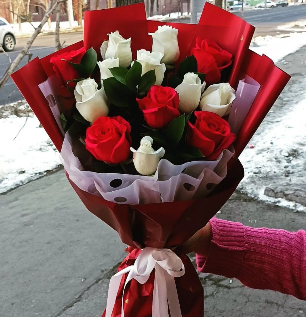 Этот великолепный букет из красных и белых роз, гармонично оформленный в элегантной красной упаковке, словно символизирует единство страсти и чистоты. Каждая роза в этом букете — это не просто цветок, а целая история, наполненная эмоциями и чувствами. Красные розы олицетворяют любовь и нежность, в то время как белые розы символизируют purity и невинность.