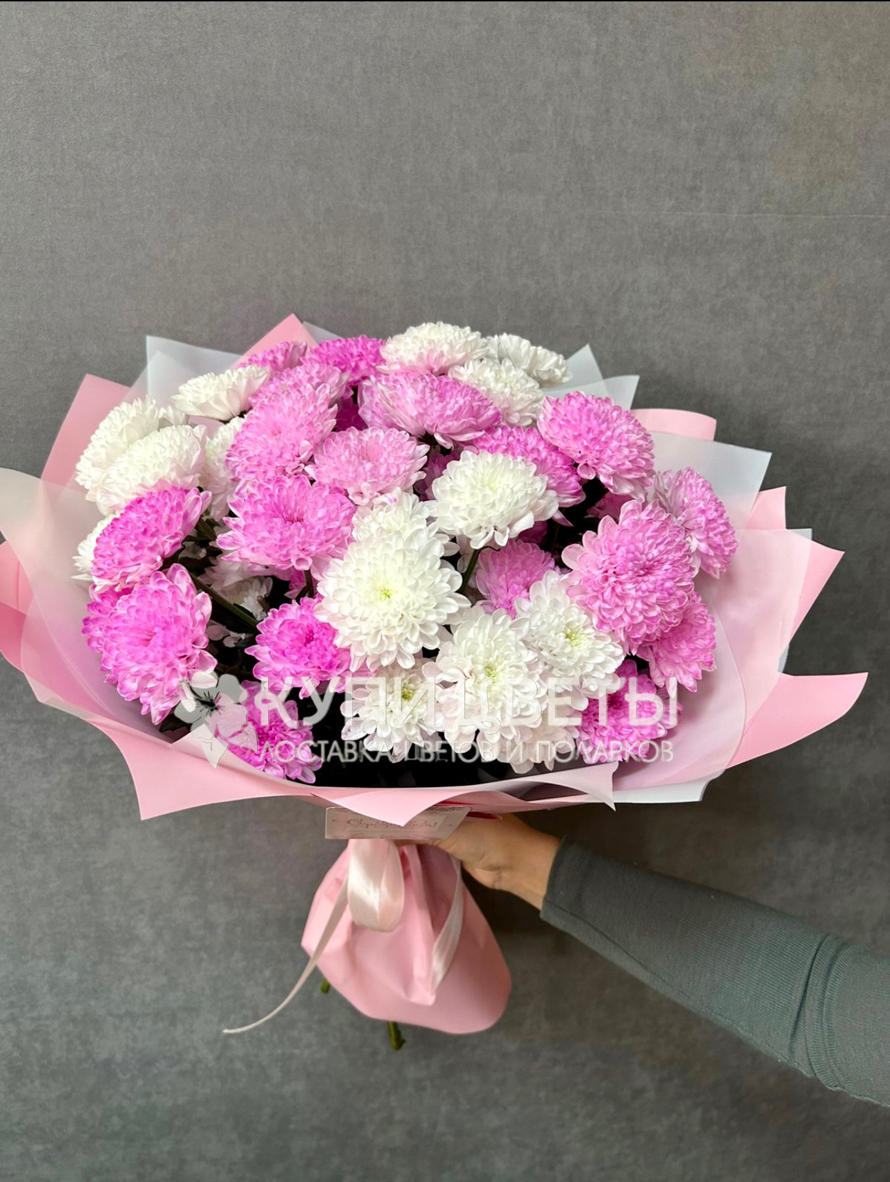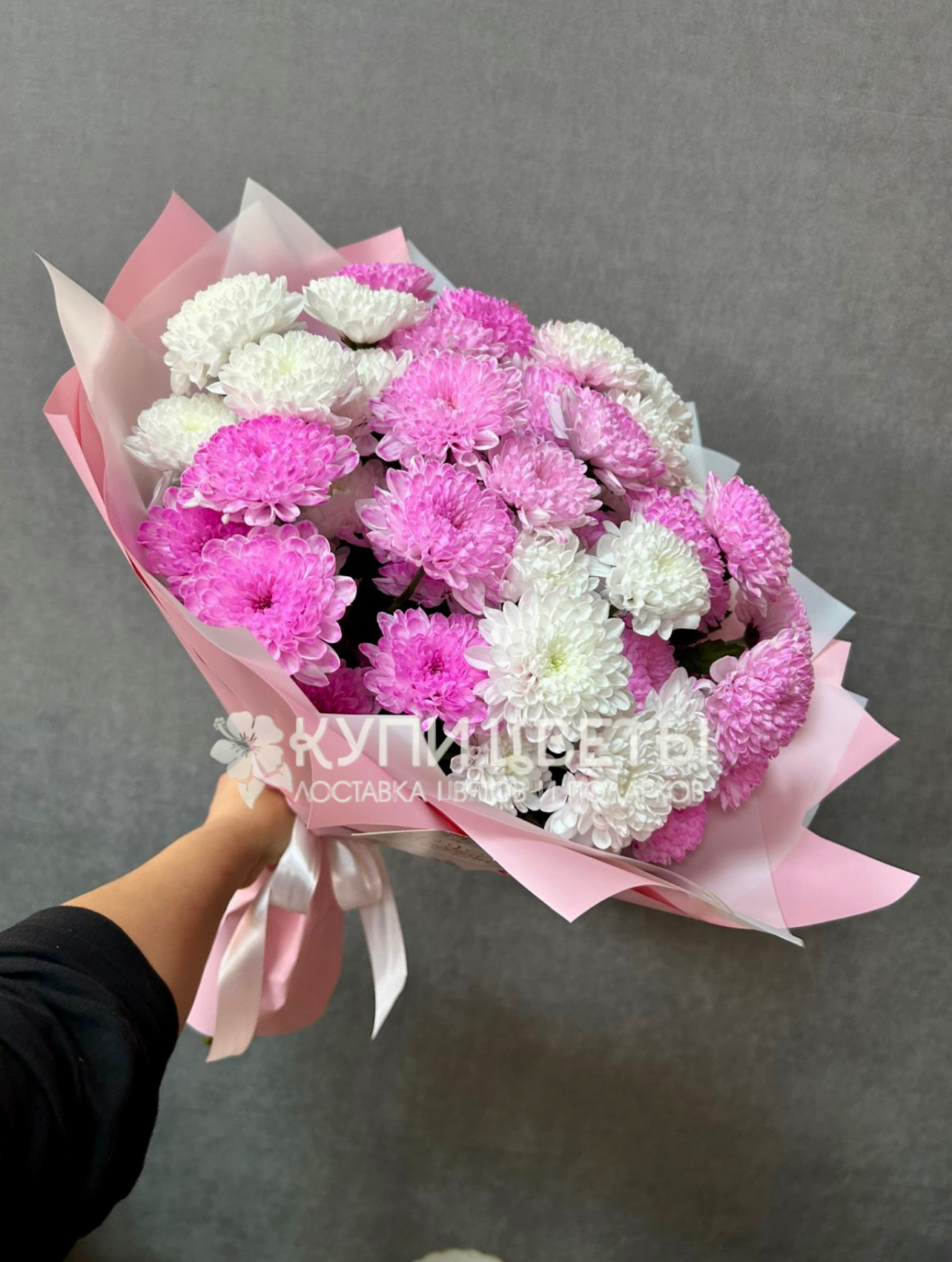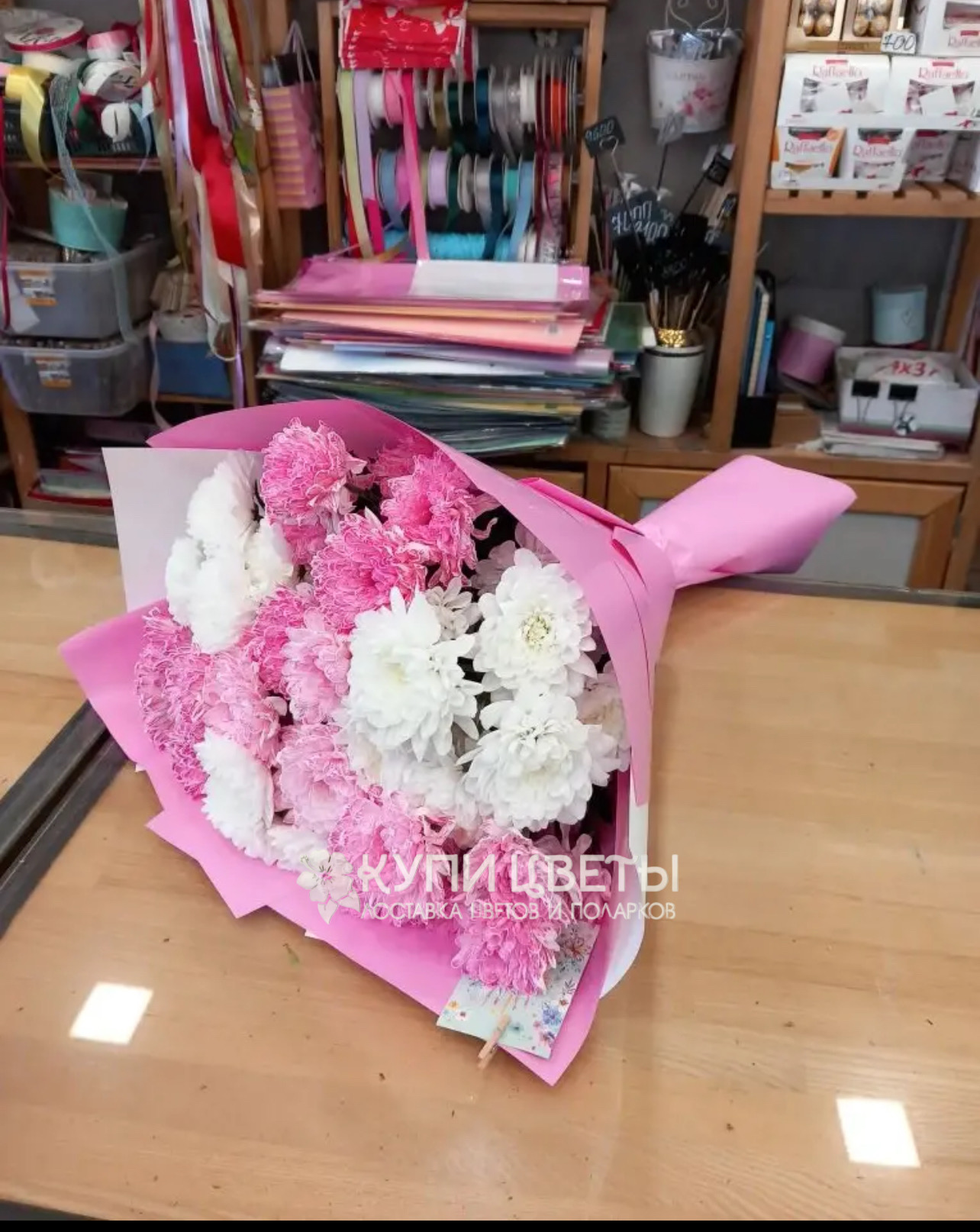 Кустовые хризантемы,упаковка,лента