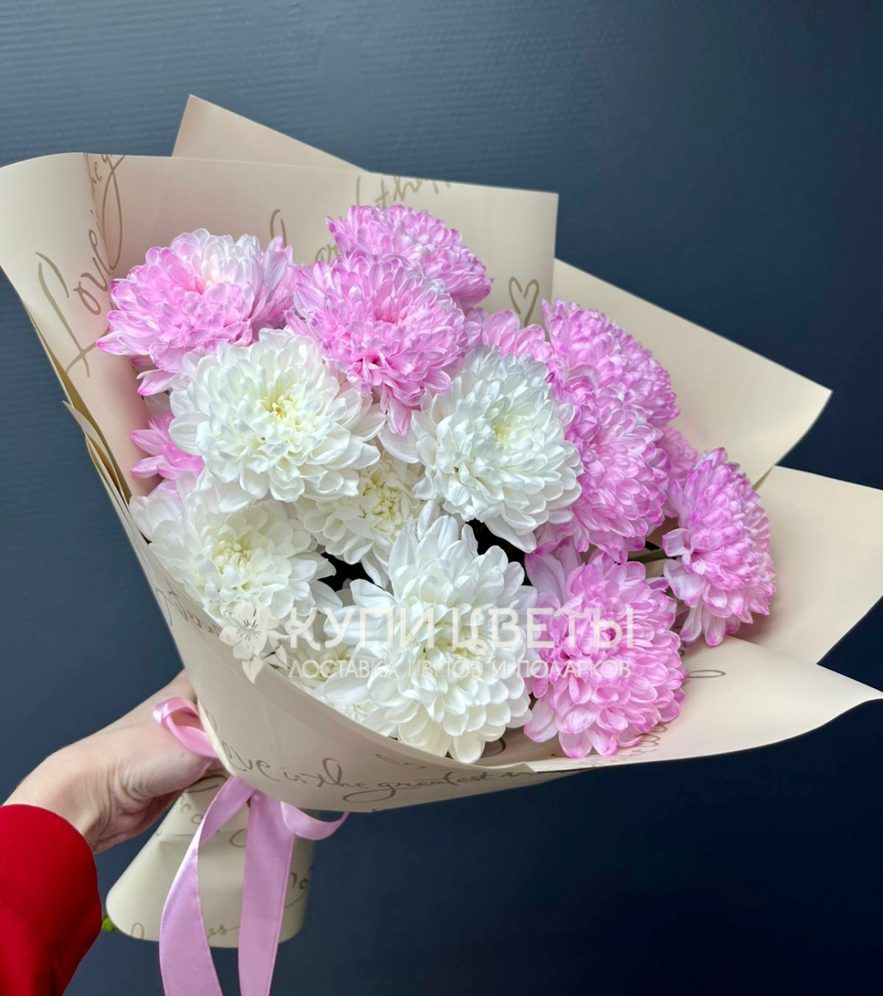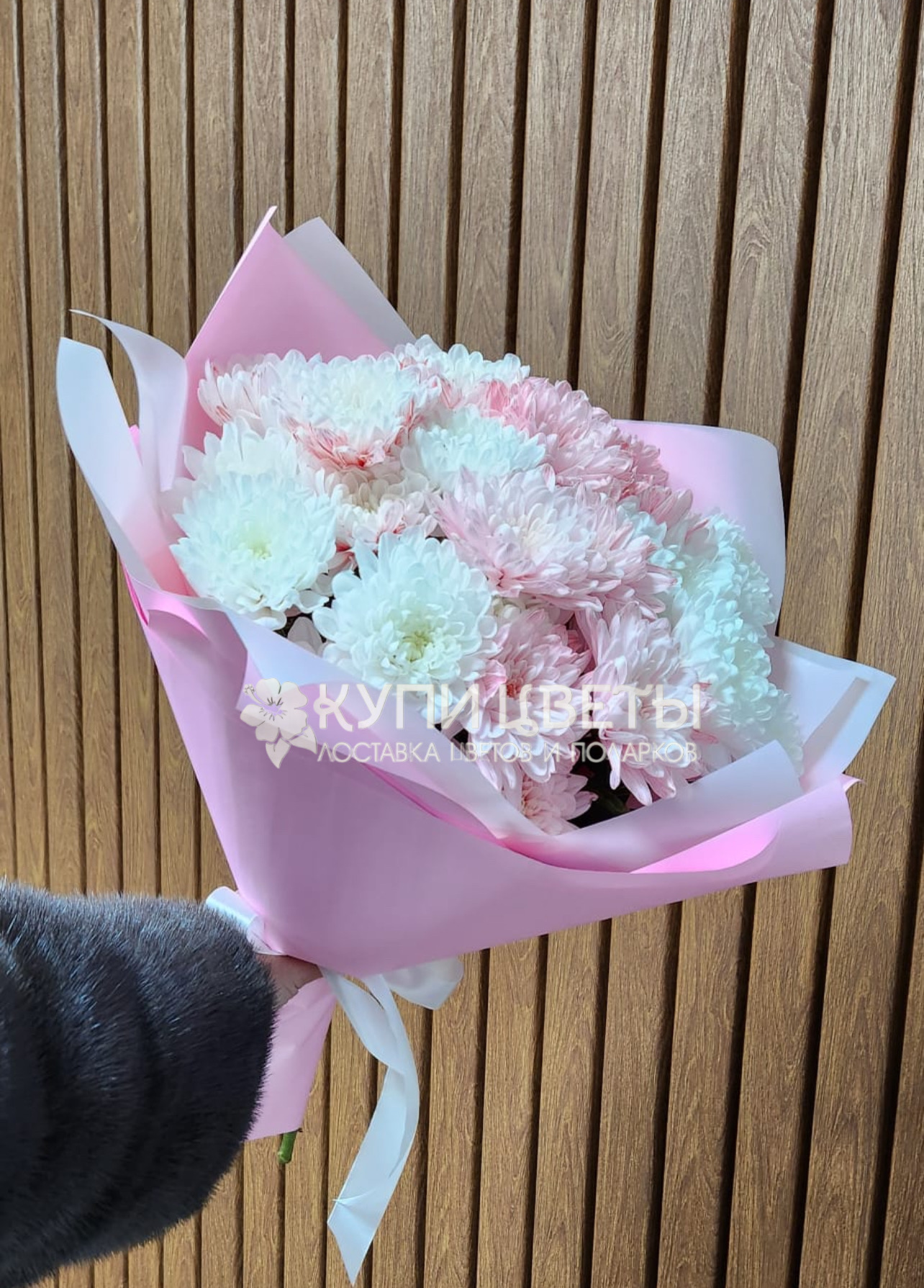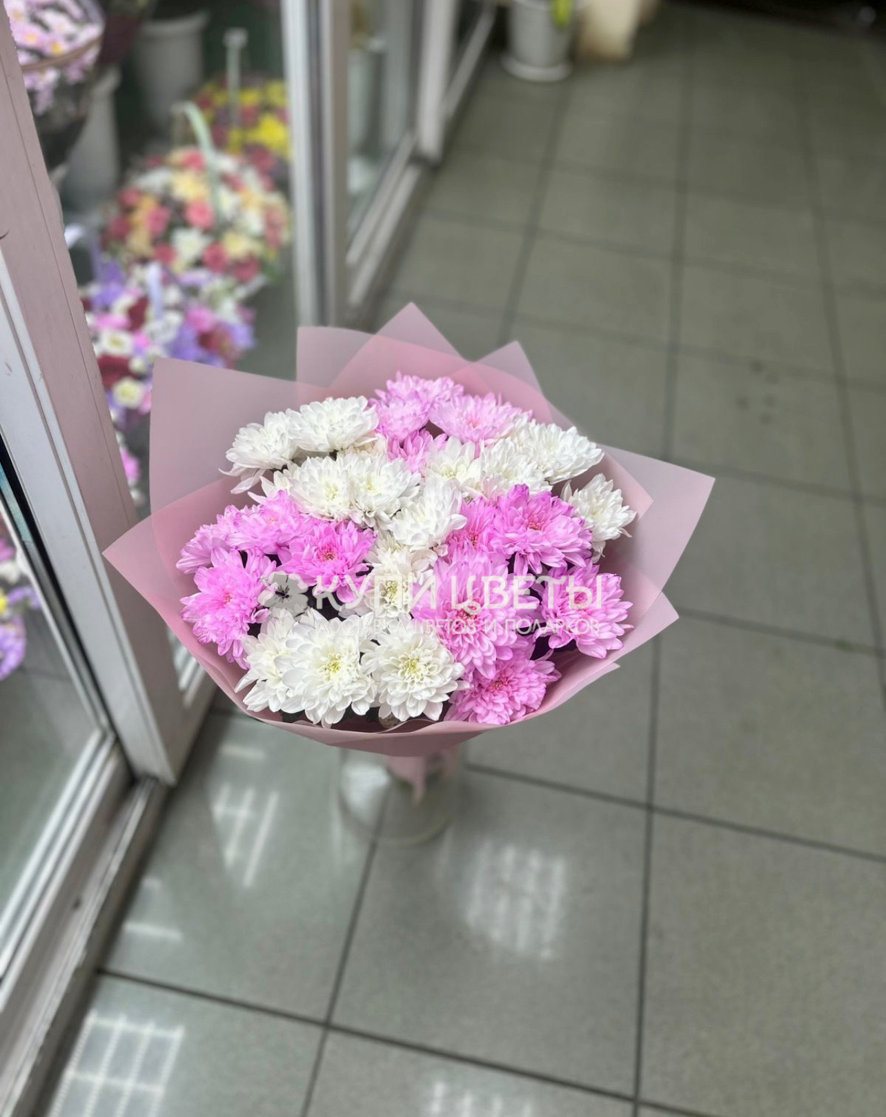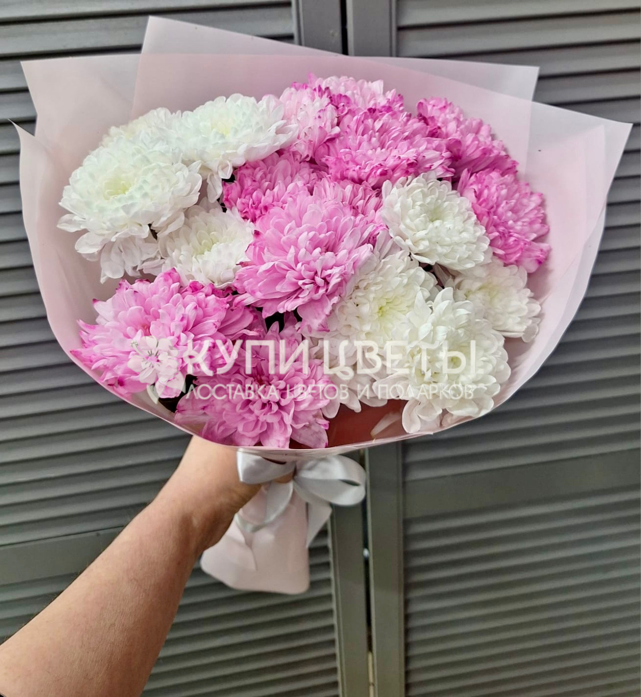 Кустовые хризантемы,упаковка,лента