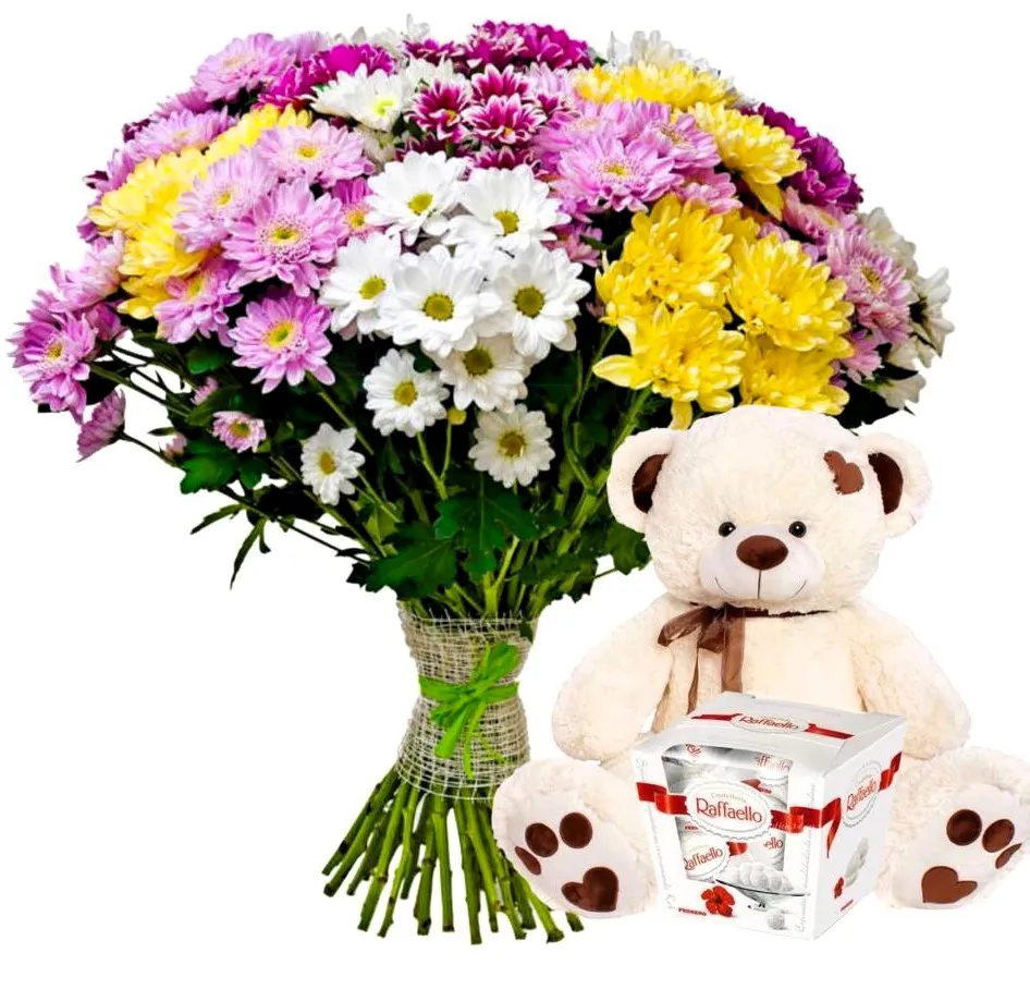 Закажите букет с хризантемами, Рафаэлло и игрушкой, и пусть каждый день будет как праздник!