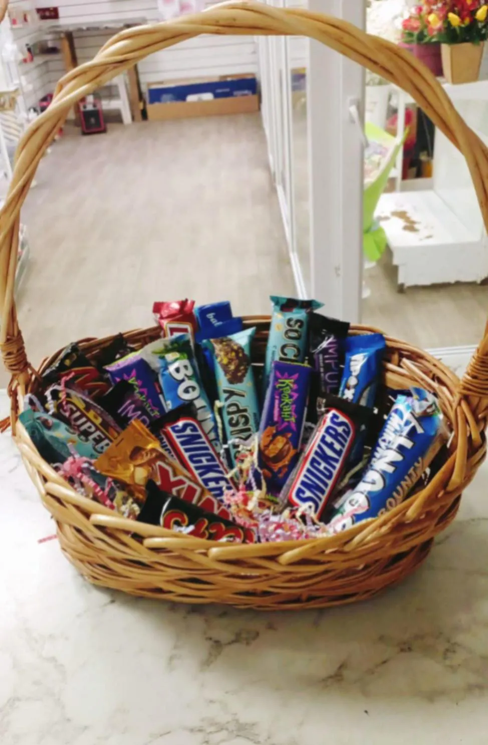 Корзина с шоколадными батончиками в ассортименте  1200 гр.