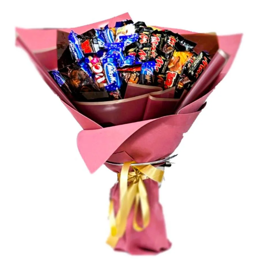 Сладкий букет из шоколадок оставит незабываемое впечатление и порадует глаз и вкус. Закажите сладкий букет для своих близких и подарите им частичку радости и счастья!  Сладкий букет из шоколадок — это не просто подарок, а настоящее произведение искусства, которое способно удивить и порадовать каждого. Такой букет сочетает в себе невероятное разнообразие вкусов и изысканный дизайн, делая его идеальным решением для любого случая: день рождения, юбилей, праздник или просто в качестве приятного сюрприза.