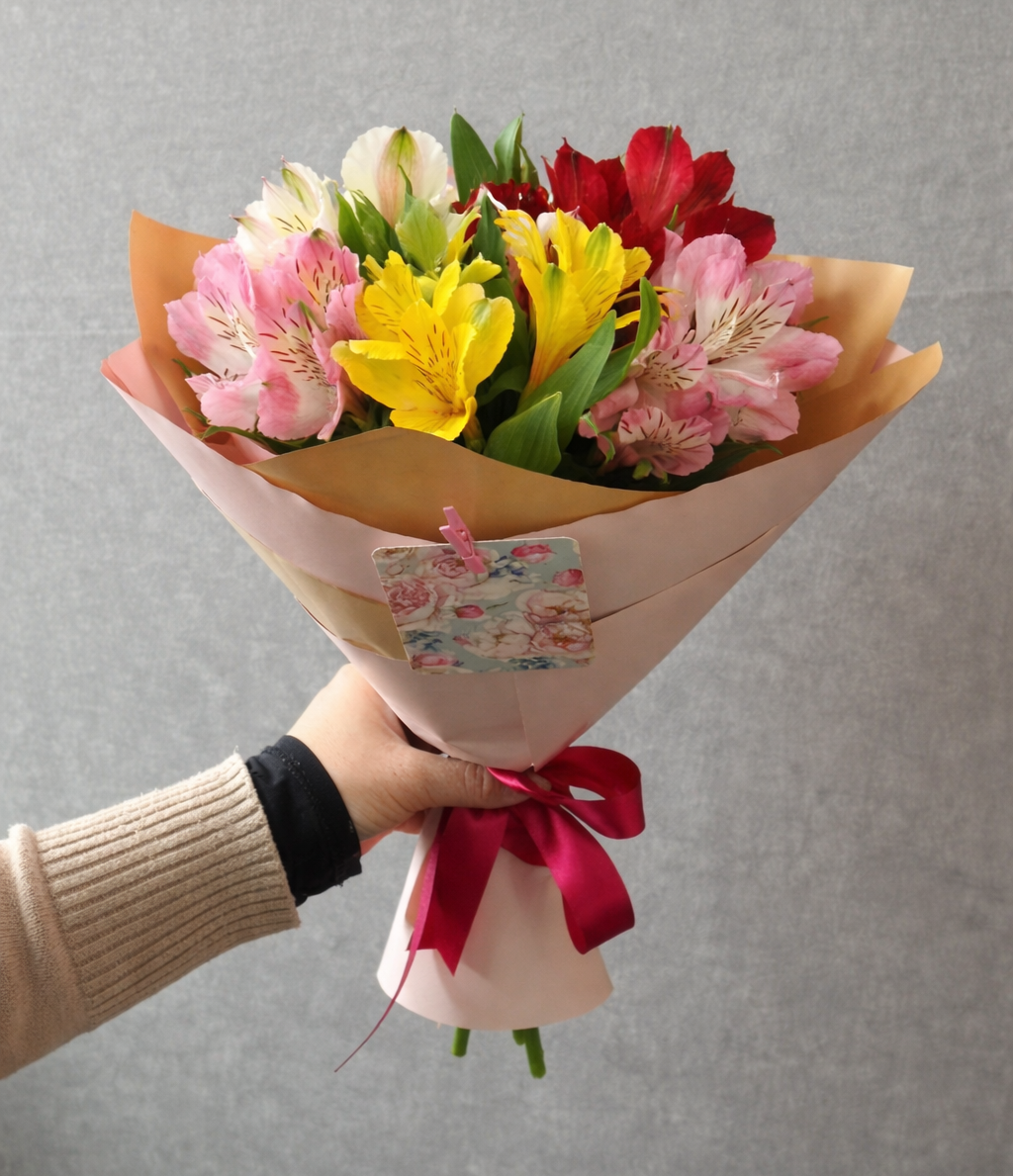 Cостав данной композиции может незначительно поменяться, из-за отсутствия некоторых позиций или сезонности цветов.